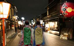 祇园是现代日本最著名的艺伎的“花街”。祇园位于京都鸭川以东的东山区,分为祇园东和祇园甲部两片,据说最初江户幕府允许茶屋在这里营业是在1665年,至今已有三百多年的历史。在最繁华的十九世纪初,祇园的艺伎多达三千多人。