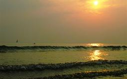三亚湾湾长沙细,岸上绿树如带,构成三亚海滨风景区美丽动人的风景线。同时,三亚湾也是欣赏日落的好地方。夕阳西下时,来海边观潮,椰树在四周有节奏的轻摆,浓烈的余晖映照在脸庞,也是十分浪漫的体验。