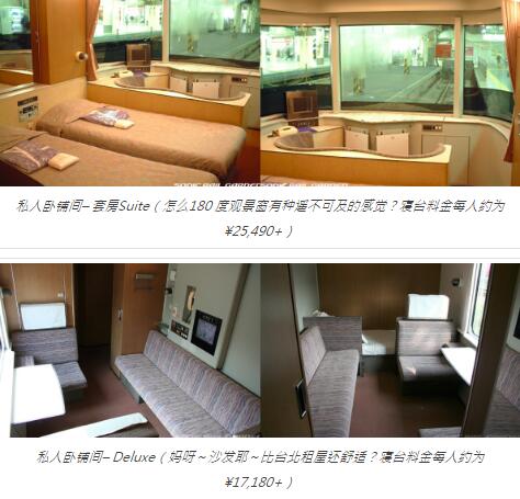 · 私人卧铺间Private Compartment:约¥16,500+(未持有周游券之原价¥28,000)