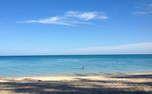 这里的沙质比较细腻,你可以与心爱的人一起潜水、划独木舟,更或者一起驾帆出海,享受海天一色的美妙景观。当然,你也可以在海滩上随意地铺个浴巾晒晒太阳,拍拍照片。享受整个下午时光,看暖暖海风吹过椰子树,看海浪卷了细细的白沙翻上岸边,又从光滑的沙滩褪下。如果需要太阳伞和躺椅的基本上都是只要买个小黑的饮料就可以一直用,不用租费,很是划算。