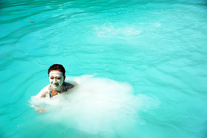 在牛奶湖,很多人爱做的事情,是让向导替你抓一把湖底淤泥涂在身上,据说能够起到美白作用,也不枉虚此行。