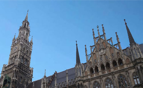 广场北边气势宏伟的哥特式建筑是慕尼黑新市政厅,每到中午11点和12点,你可以在广场上欣赏市政厅钟楼有趣的木偶舞蹈。