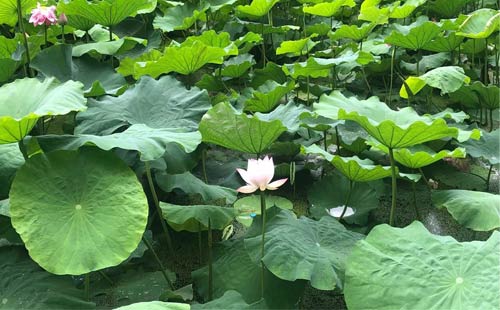 作为国家AAAA级旅游风景区,华岩旅游区丹楹刻桷,茂林修竹,风景不殊。七步荷塘,金秋荷叶初泛黄,荷塘边金桂、银桂却开得十分好。