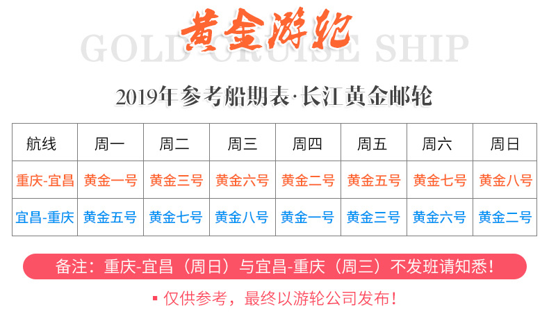 温馨提醒:您选择的房费已包含船票、住宿、用餐(普通游轮不含餐)、行程中的景点门票、导服费。游轮不定期改造,房间参数或许有变化,以登船当日实际情况为准。