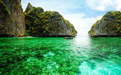 岛上不仅有优美完整的天然热带岛屿风光,珊瑚礁的海岸景色同样让人难忘。由于开发较晚,到此的游客数量比较少,与喧闹的普吉岛相较,这里沙滩的环境格外清幽,附近只有零星泳客、滑浪发烧友和耳畔传来的浪涛拍岸声,简直就是世外桃源!