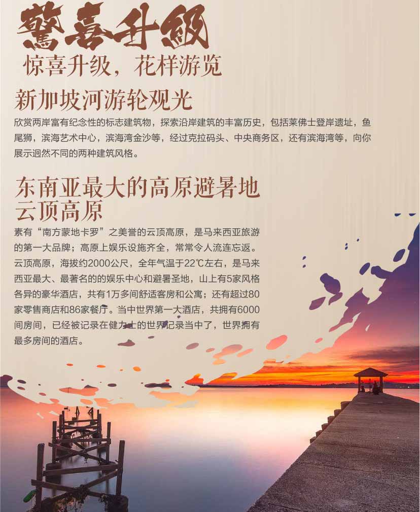 您好,马来西亚和新加坡纯玩的行程都有的,旅行社这边已经把行程发给您了。您这边如果有什么疑问可以和业务员沟通,感谢您的留言,祝您生活愉快!