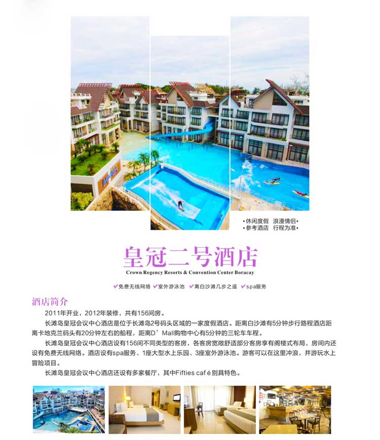 02.本行程属于自助式旅游,(不派领队)导游服务费1天RMB40元/人;依人数安排全程英文或中文导游于长滩岛随团服务。15 人以上(如需派领队)领队另行计费。